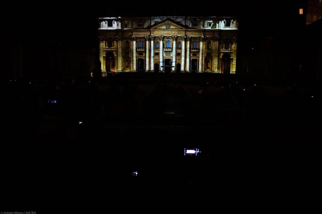因此,教會(huì )以燈光秀的方式點(diǎn)亮圣伯多祿大教堂。教堂正立面每15分鐘(晚上9點(diǎn)到11點(diǎn))被點(diǎn)亮(視頻投影)一次,向人們講述首任教宗圣伯多祿的故事,以此作為即將到來(lái)的禧年準備工作的一部分。