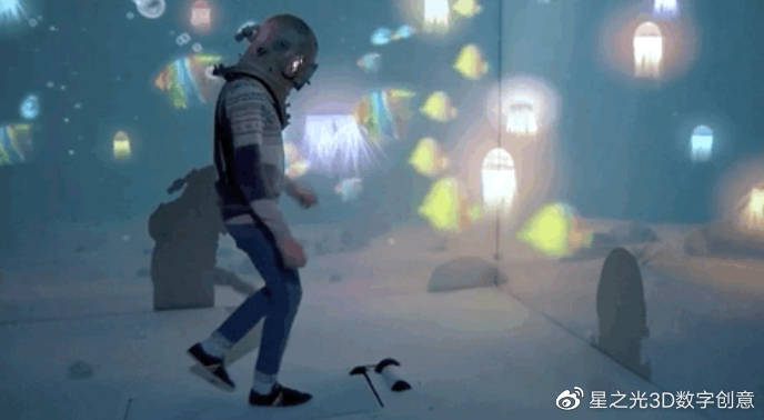 這個(gè)工作使用了投射技術(shù),產(chǎn)生了許多很有意思的效果,它確實(shí)凸顯了這項技術(shù)的潛力。觀(guān)看演員們與燈光互動(dòng)-下樓梯,伸手觸摸并不存在的門(mén)把手,乘地鐵,漫游海底,跳進(jìn)未知的山洞…盡情享受這一旅程!